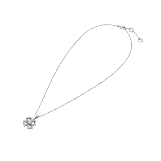 素晴らしき永遠の都市で花を咲かせるフィオレヴァーは、幸せと喜びの象徴として、いつもローマ人に大切にされてきた魅力的な四弁花からインスピレーションを得ています。巧みなエレガンスと快活な自発性を融合した一輪の花のペンダントネックレスは、透かし細工デザインの繊細さで優しく輝き、日常生活に輝きと優美な女性らしさをもたらします。ブリリアントカット・ダイヤモンド(0.10ct)とパヴェダイヤモンド(0.06ct)をあしらった18Kホワイトゴールドのフィオレヴァー ネックレス。
