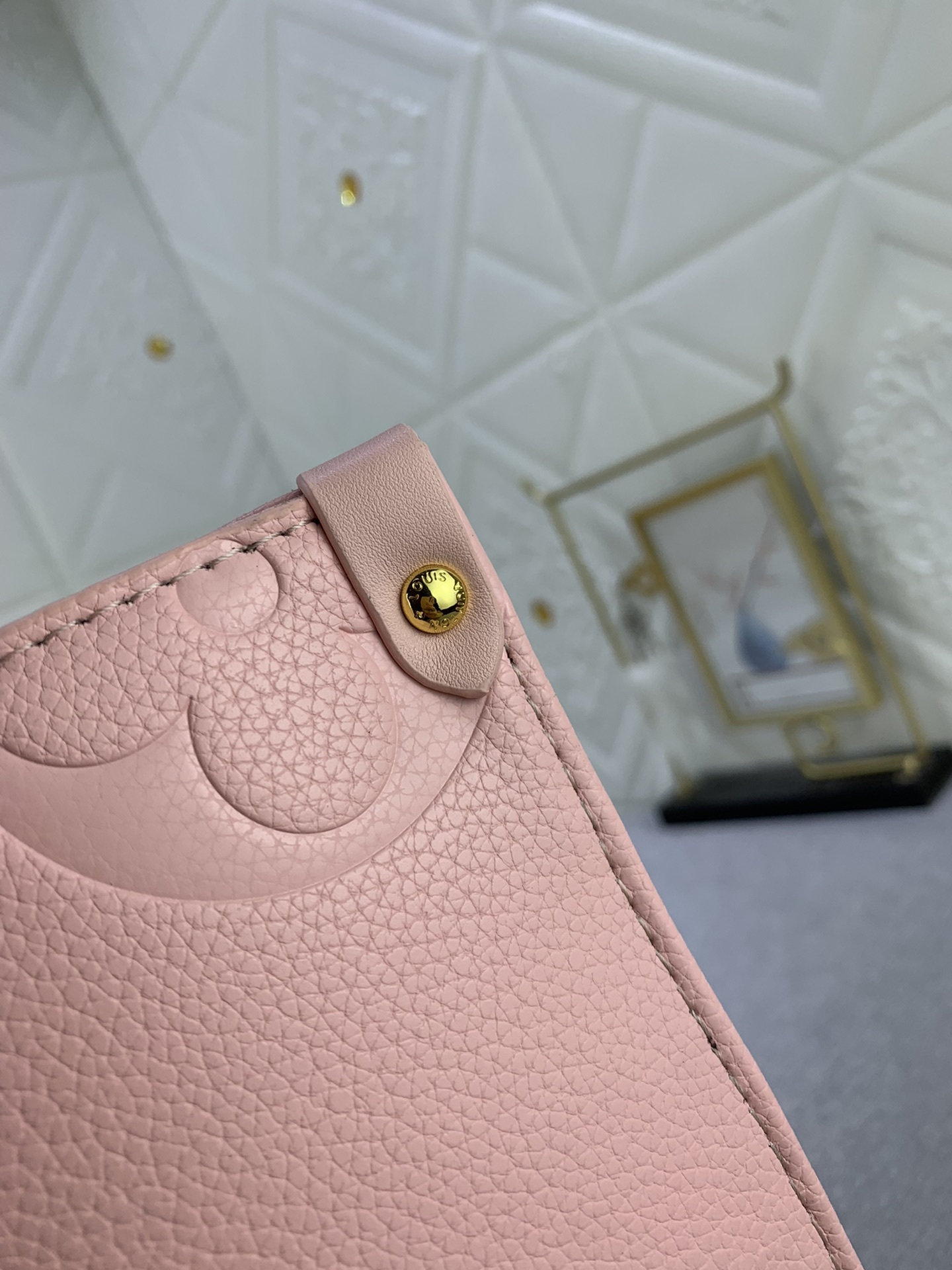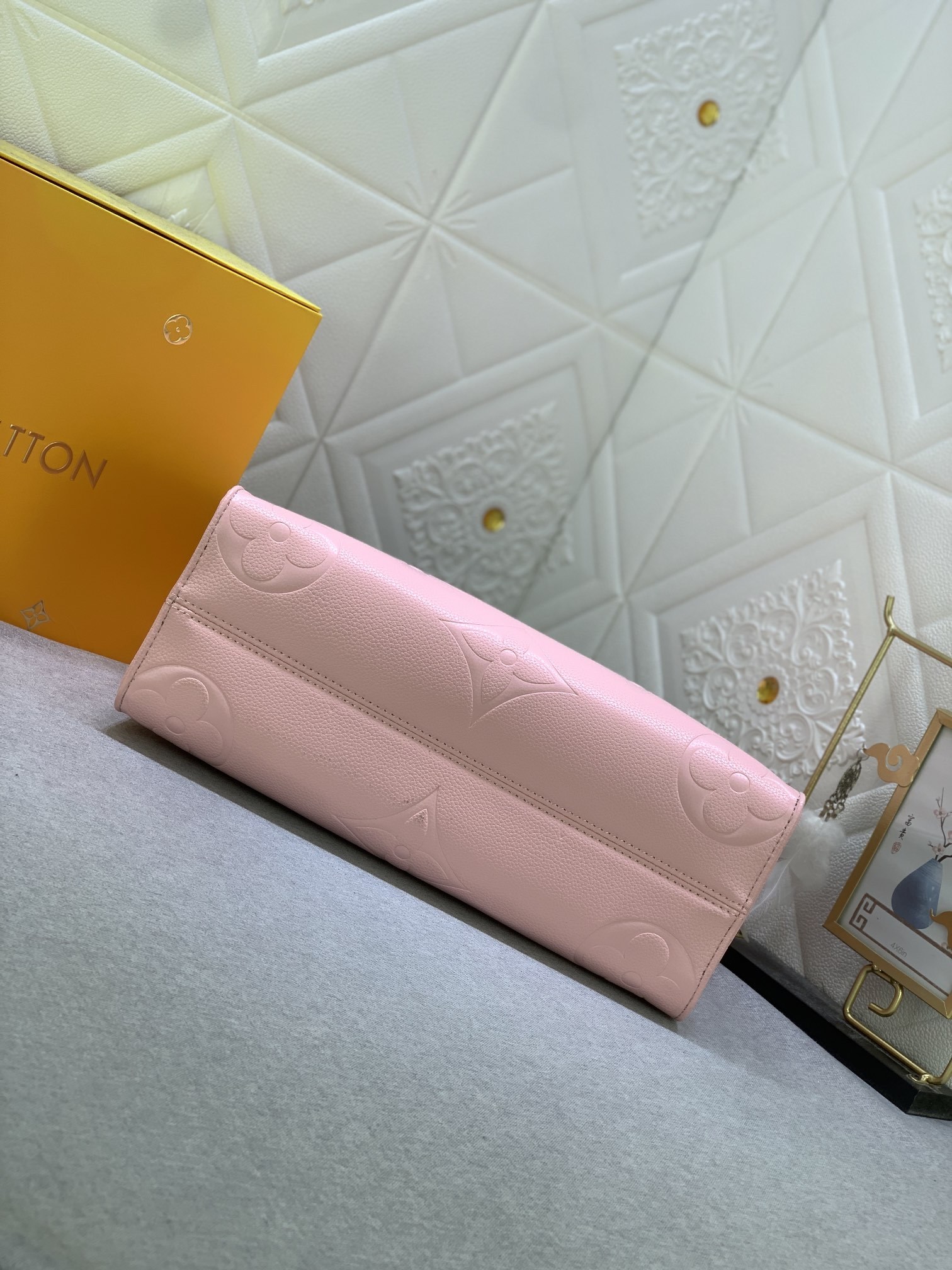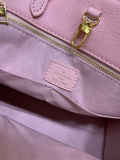モノグラムは、フルレザーにエンボス加工が施された、白と紫のスクリーン印刷されたミイラバッグ ショッピングバッグです。