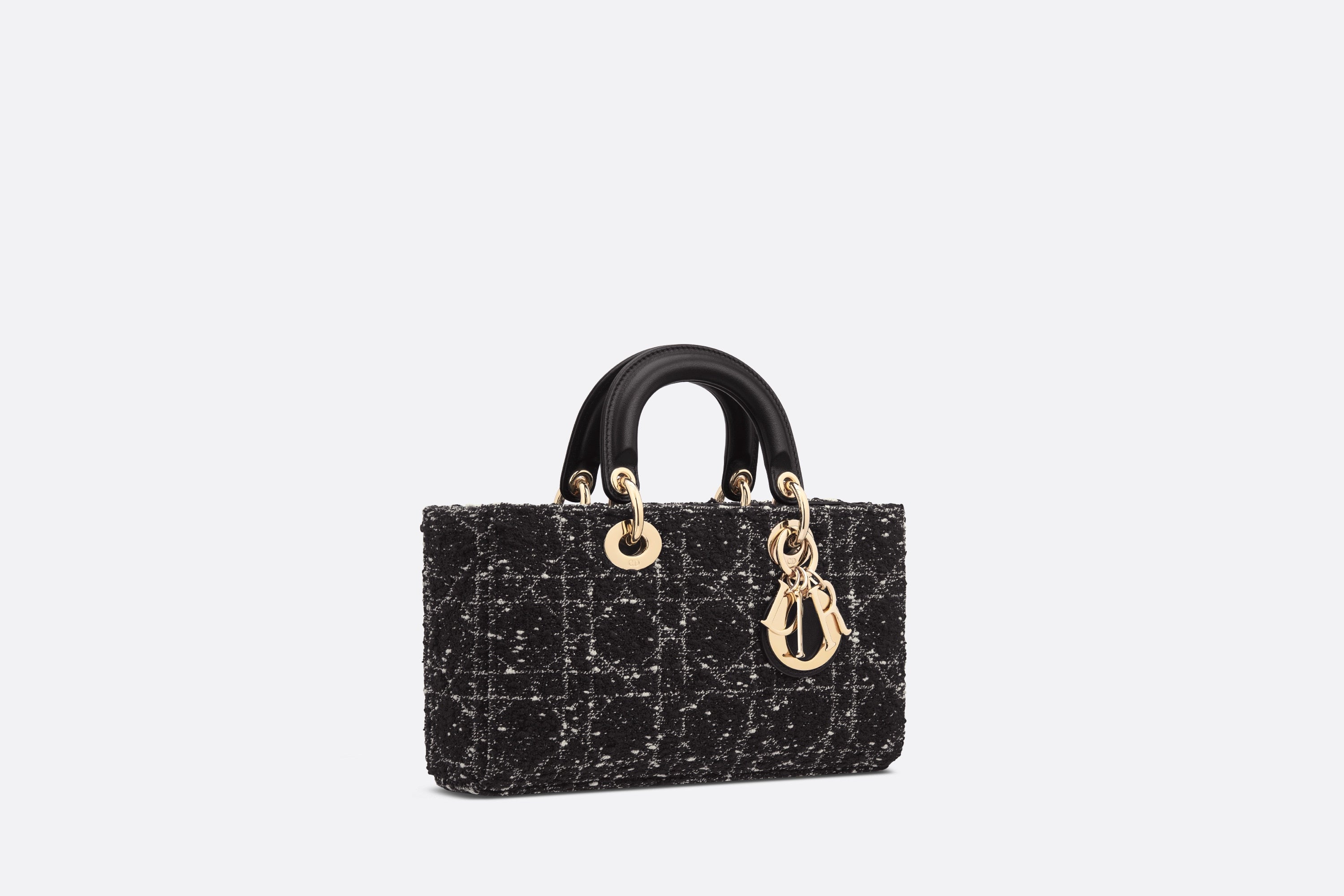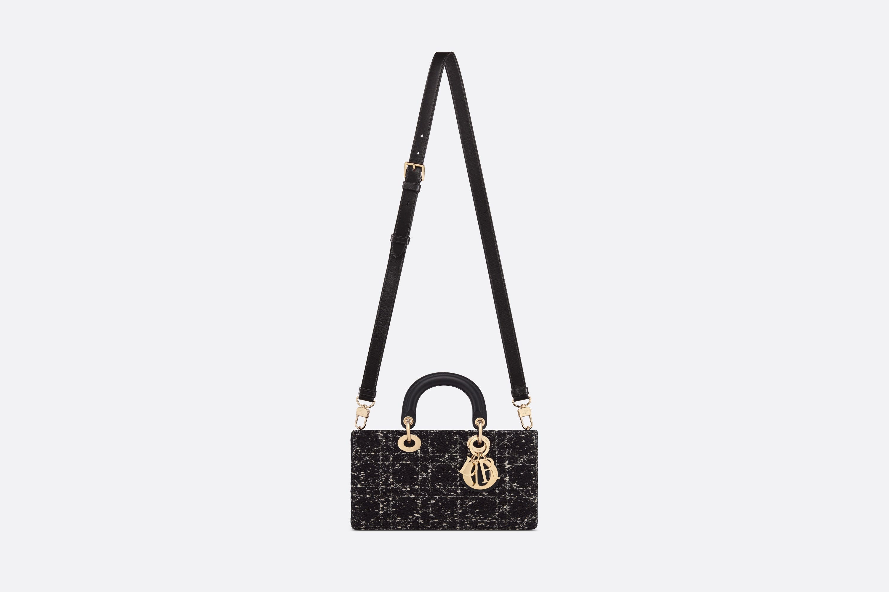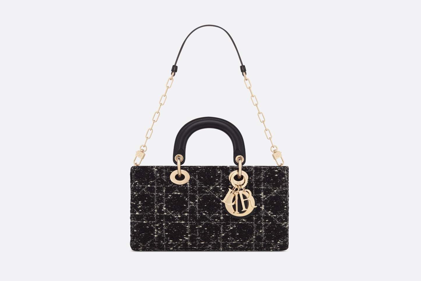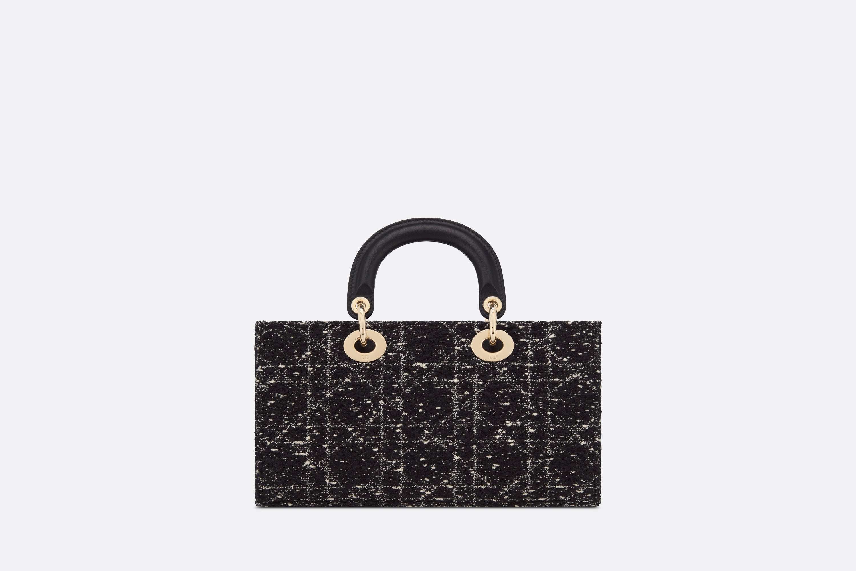 メゾンのビジョンであるエレガンスと美を体現する「Lady D-Joy (レディ D-ジョイ)」バッグ。「レディ ディオール」ラインらしい、すっきりとしたデザインが魅力です。スタイリッシュで洗練されたブラックのモデルに、複数の糸を組み合わせて「カナージュ」モチーフを描き、ツイード風のテクスチャーを際立たせました。ペールゴールドトーンのメタル製D.I.O.R.チャームがきらめきを添え、シルエットの美しさを引き立てます。取り外しが可能なチェーンストラップと、長さの調節と取り外しが可能なレザーストラップが1本ずつ付属。ハンドバッグとしてはもちろん、ショルダーバッグやクロスボディバッグとしてもお楽しみいただけ、普段使いに最適なミディアムサイズのモデルです。