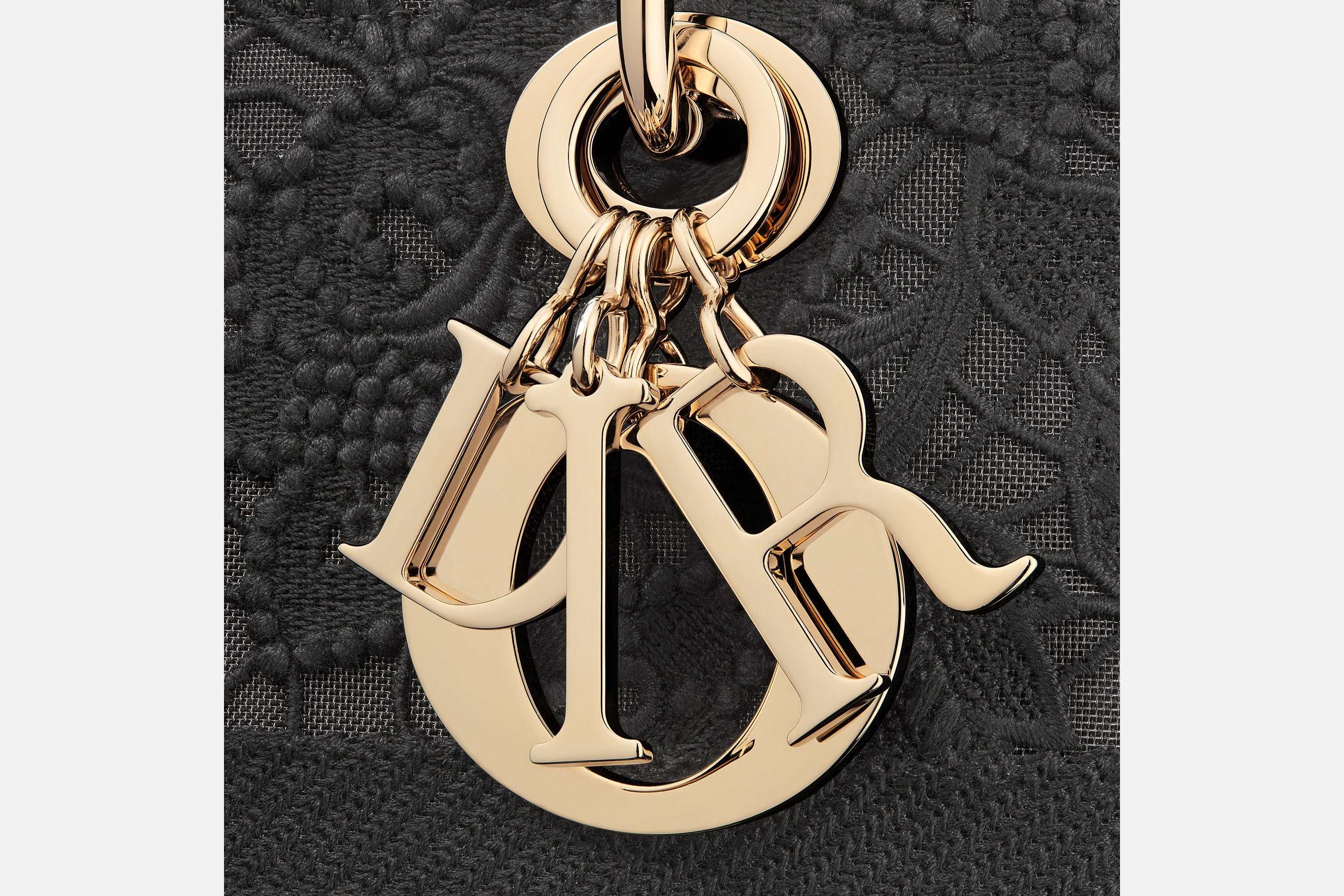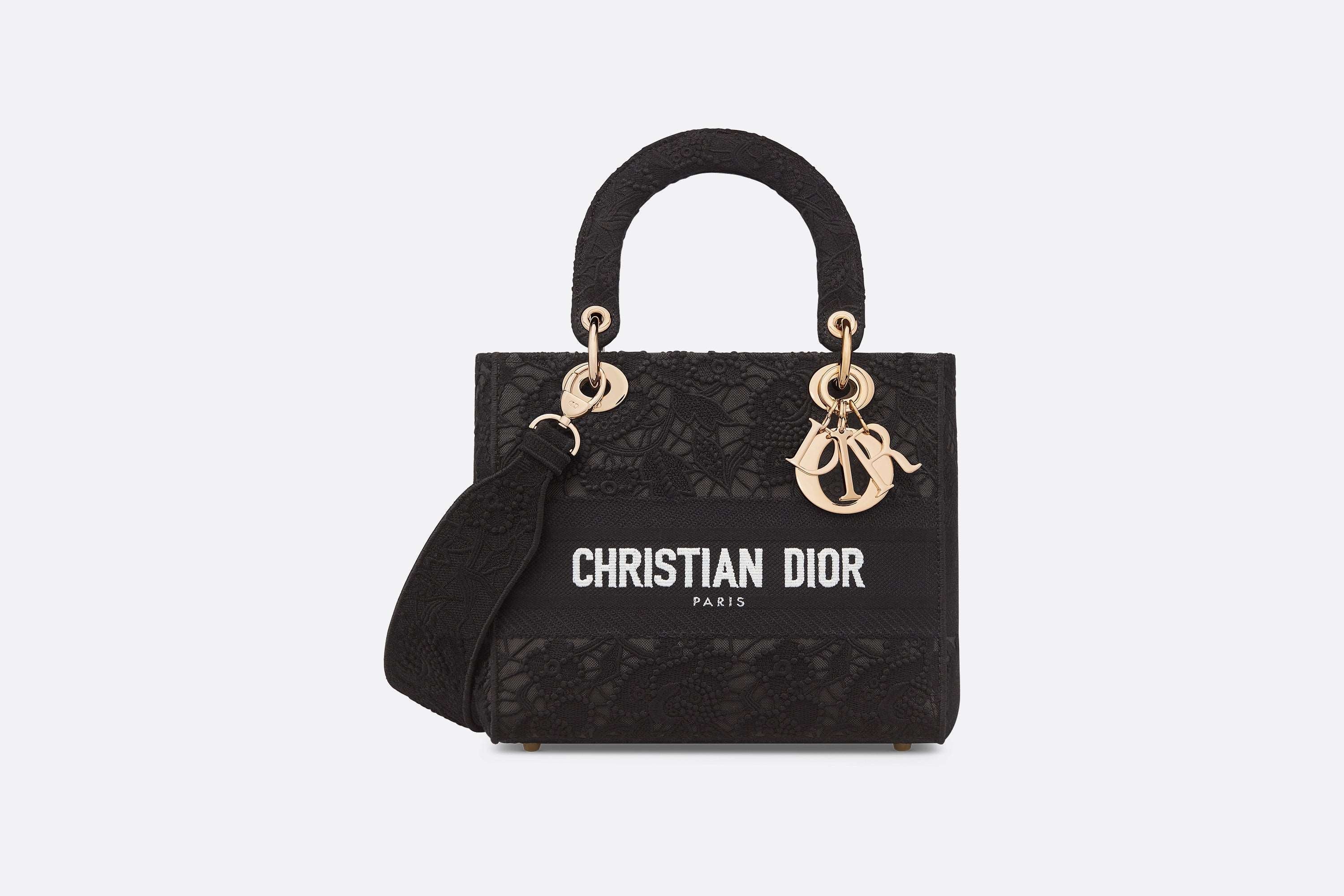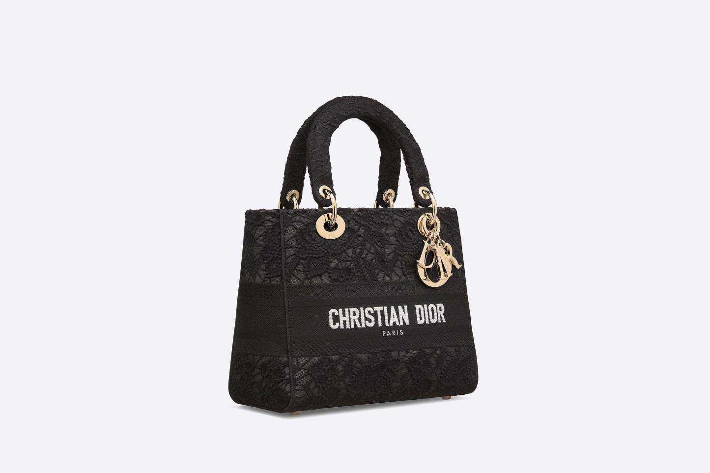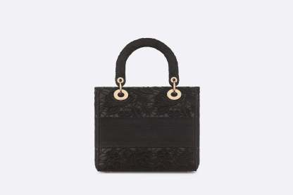 メゾンのビジョンであるエレガンスと美を体現する「レディ D-ライト」バッグ。レースに着想を得て立体的なマクラメ風に仕上げたブラックの「D-Lace (D-レース)」モチーフを全面に刺繍し、メゾンのサヴォワールフェールを表現した洗練されたバッグです。フロントにはChristian Dior Parisシグネチャーでアクセントをプラス。ペールゴールドトーンのメタル製D.I.O.R.チャームで輝きを添え、シルエットの美しさを引き立てました。幅広でリバーシブルの刺繍入りショルダーストラップは取り外すことができ、ハンドバッグとしてはもちろんクロスボディバッグとしてもお使いいただけるミディアムサイズのモデルです。