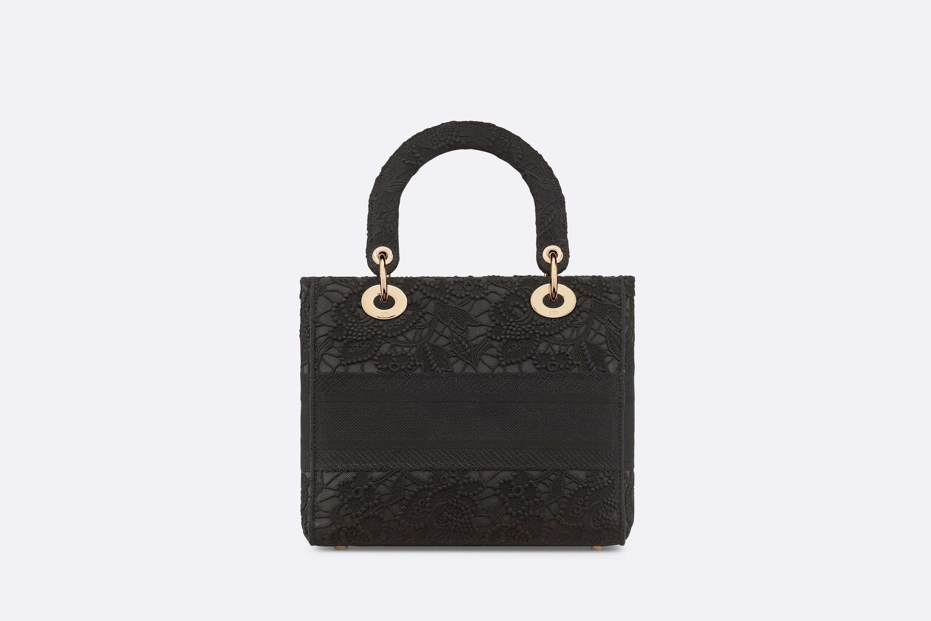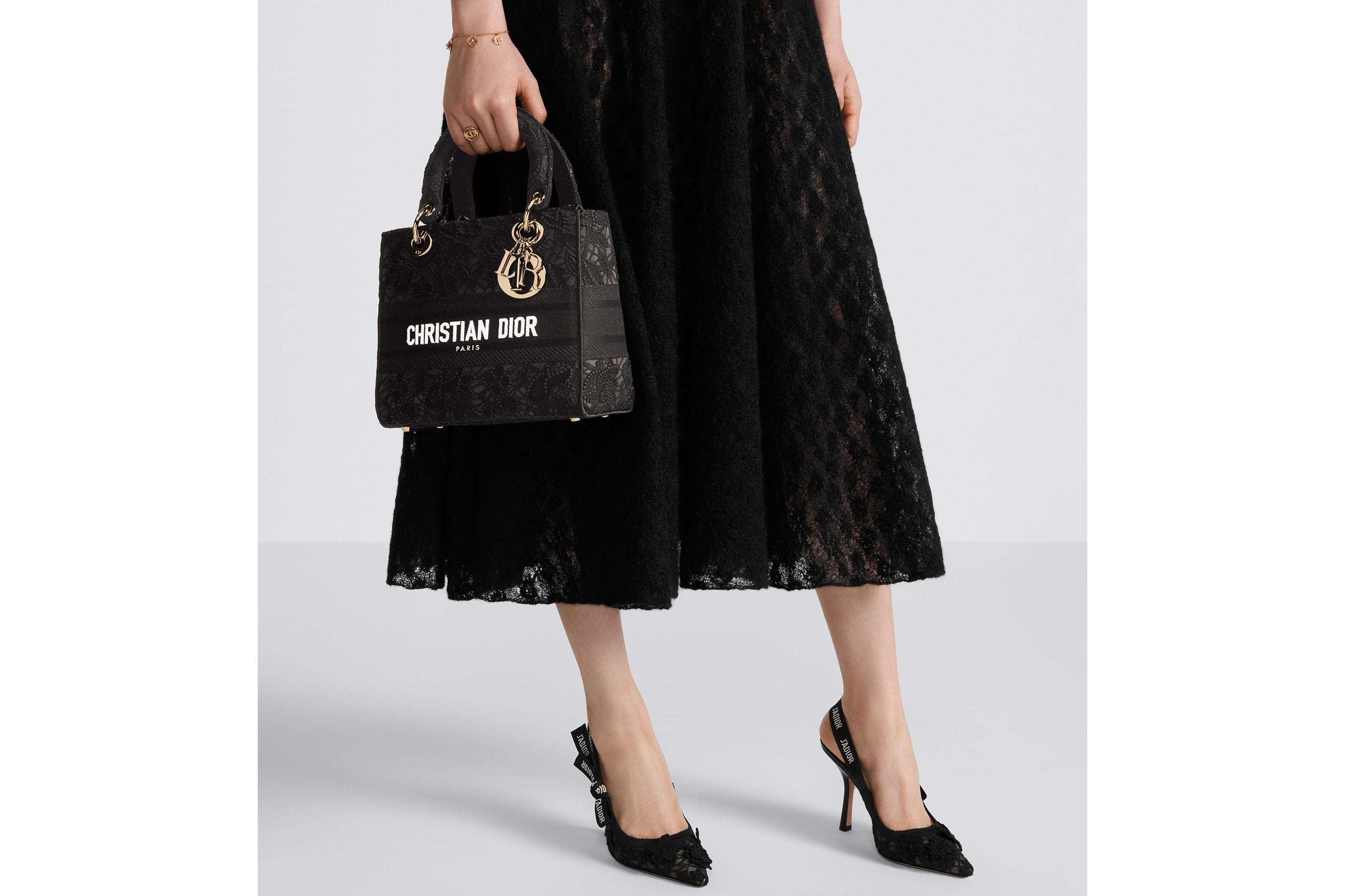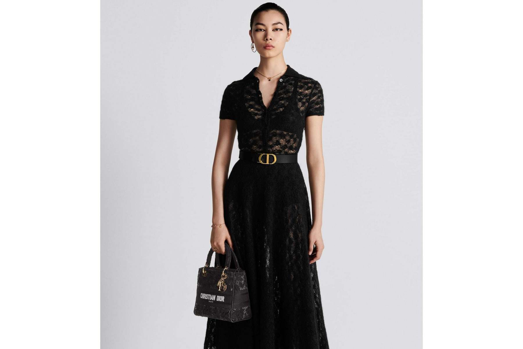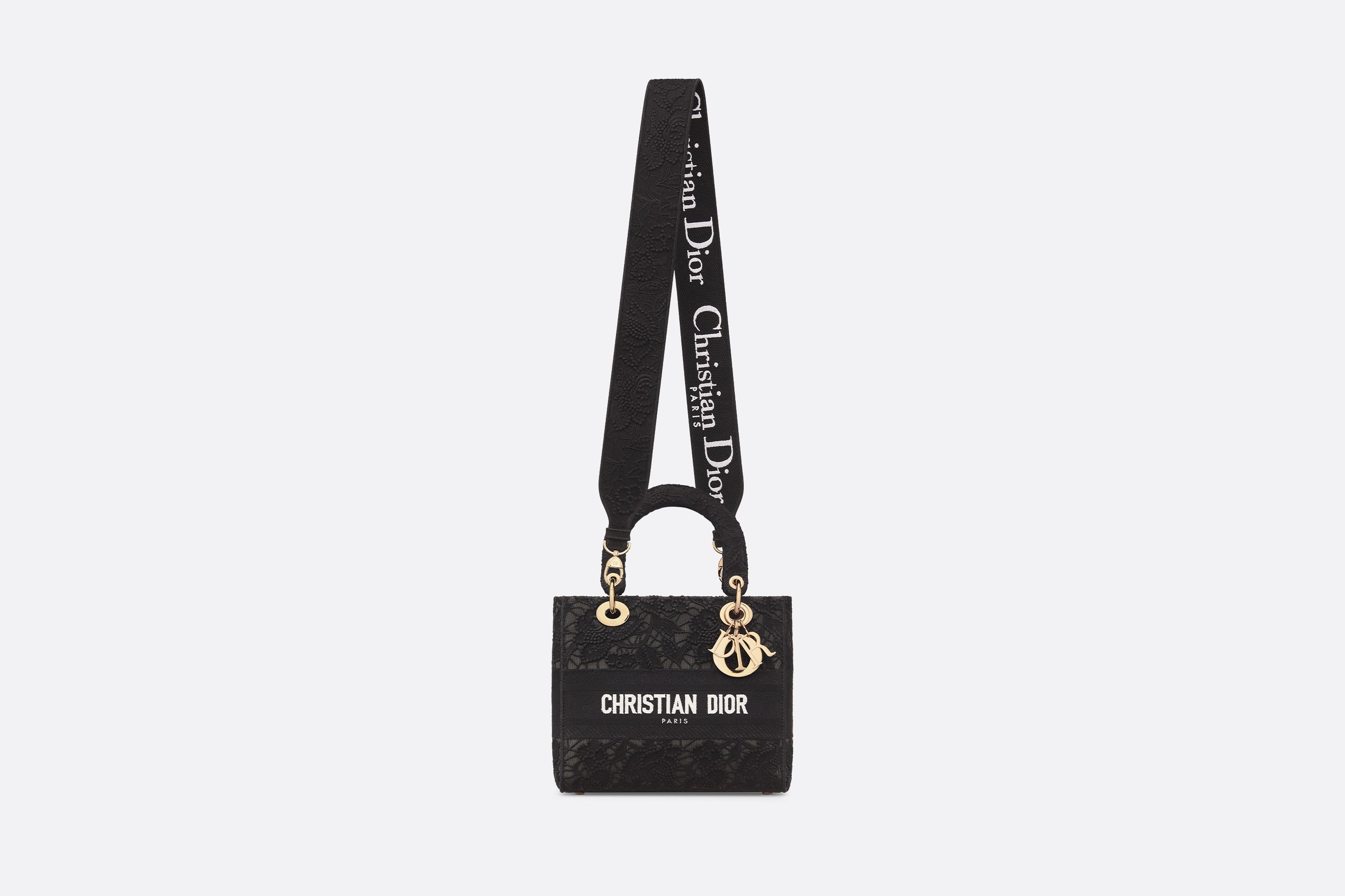 メゾンのビジョンであるエレガンスと美を体現する「レディ D-ライト」バッグ。レースに着想を得て立体的なマクラメ風に仕上げたブラックの「D-Lace (D-レース)」モチーフを全面に刺繍し、メゾンのサヴォワールフェールを表現した洗練されたバッグです。フロントにはChristian Dior Parisシグネチャーでアクセントをプラス。ペールゴールドトーンのメタル製D.I.O.R.チャームで輝きを添え、シルエットの美しさを引き立てました。幅広でリバーシブルの刺繍入りショルダーストラップは取り外すことができ、ハンドバッグとしてはもちろんクロスボディバッグとしてもお使いいただけるミディアムサイズのモデルです。