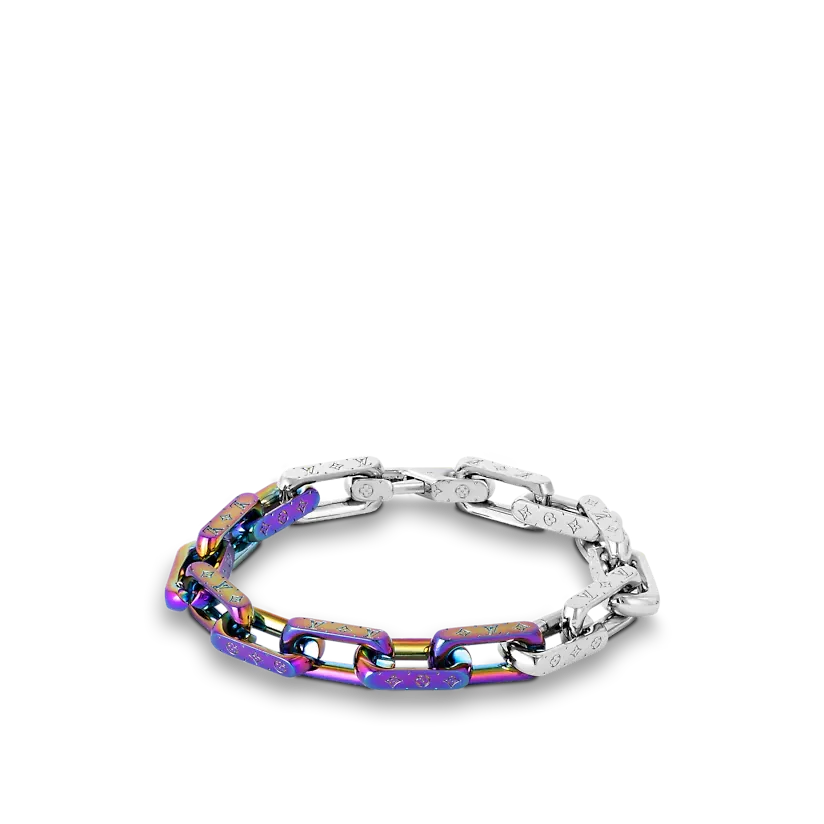Monogram Chainブレスレットはクラシックな要素をゴージャスな色に染み込ませ、その微妙な変化により、完成品ごとに異なる色が表示され、モノグラムジュエリーシリーズに新しいアイデアが注入されます。 ルイ・ヴィトンのロゴは細部までこだわっています。
