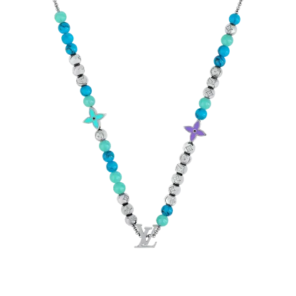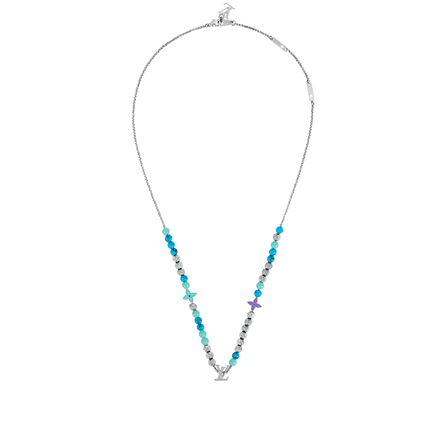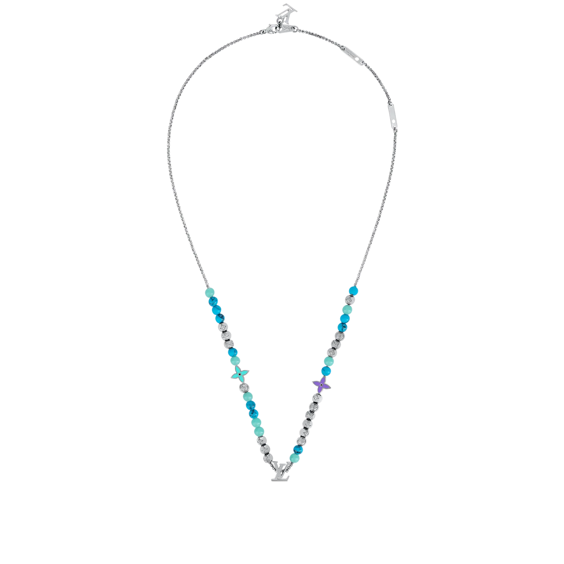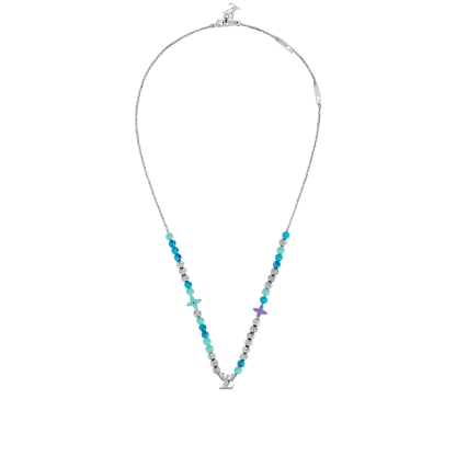 ボーホーシックなトレンドを体現するネックレス「コリエ・LVビーズ」。複数の素材からなる小さなビーズをモノグラム・フラワーのチャームと組み合わせ、生き生きとしたデザインに仕上げました。調節可能なチェーンでさまざまな長さをお楽しみいただける、アイキャッチなアクセサリーです。クラスプにあしらったLV イニシャルのチャームが個性を放ちます。