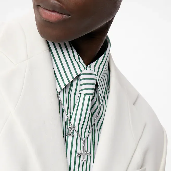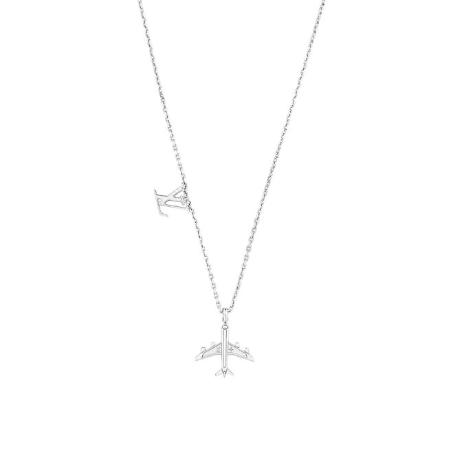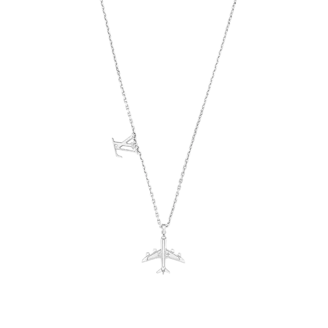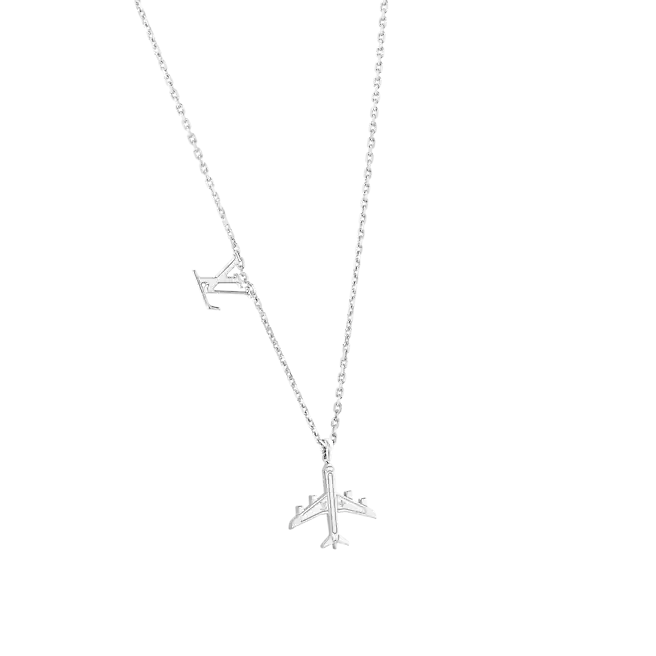 ネックレスは2021年の秋冬ショーの探検の旅を続けています。磨かれた飛行機の形をしたペンダントにはモノグラムの花とクラシックなLVの文字が刻まれており、ラッカー効果、職人技のチェーン、LVのロゴで若々しさを満たしています。