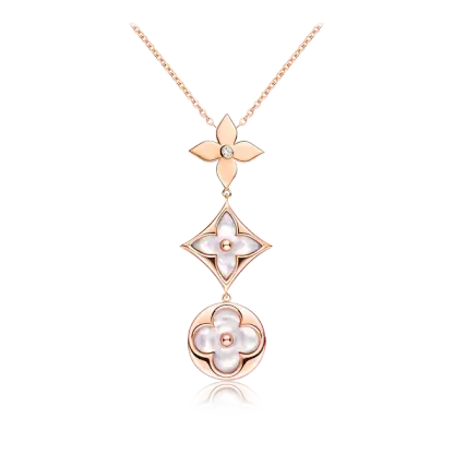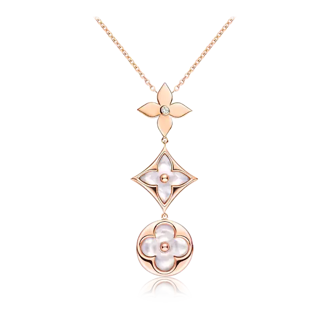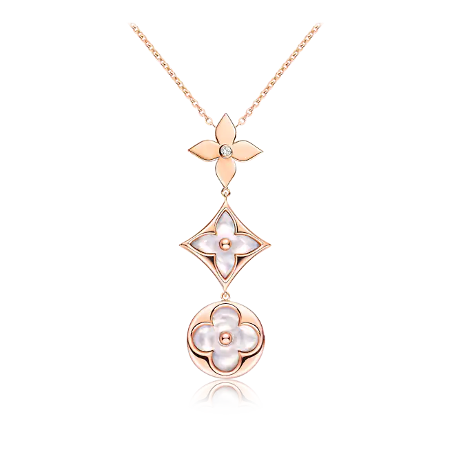 Color Blossomは、1896年にGeorge LouisVuittonによって作成されたモノグラムの花柄に敬意を表しています。 白いマザーオブパールに鮮やかなローズゴールドで美しい花が咲きます。 ダイヤモンドのこれらの繊細な曲線やフレアを磨くには、何ヶ月もの細心の注意が必要です。 このまばゆいばかりのジュエリーコレクションは、特に魅力的な個性的なスタイルを生み出します。