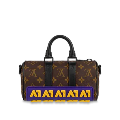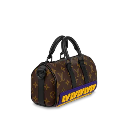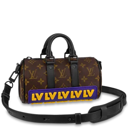 大胆な色使いとスタイルで2021秋のテーマである「LV ラバー」を表現した「キーポル XS」。モノグラム・キャンバスで仕立て、下部にラバーのアップリケをあしらいました。パープルとイエローで表現したメゾンのイニシャルが目を引きます。メゾンならではのステートメントを放つ、実用的なバッグです。快適に持ち運べるダブルハンドルと調節可能なストラップ付き。