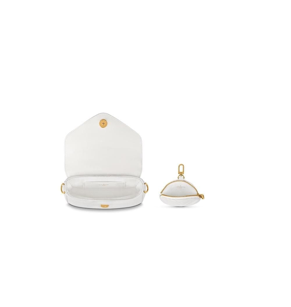 「マルチポシェット」はキルティングカーフスキンで作られています。 メッセンジャーバッグやハンドバッグの多機能単品としてお使いいただけます。 目を引くロゴの刺繍が施されたワイドショルダーストラップ 手やショートショルダーに持ち運べるゴールドチェーン ショルダーストラップにスナップフックが付いた丸い小銭入れ すべて取り外し可能なデザイン。多目的を最大限に活用しています。バッグファッションアクセサリー。