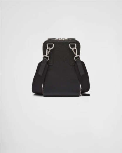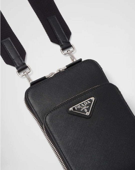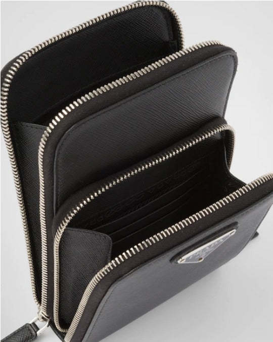 PRADA*ロゴ サフィアーノレザー スマートフォンケース ブラック
