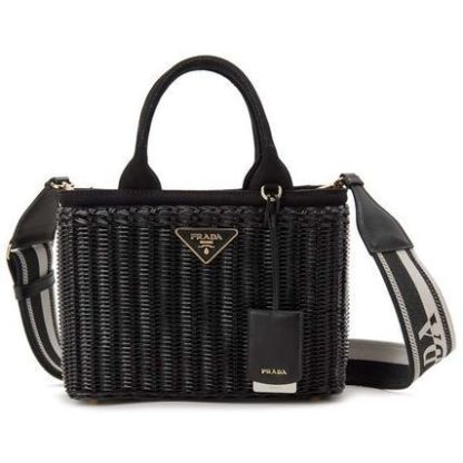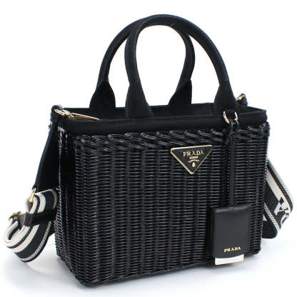 ・カラー:NERO ブラック・金具色:ゴールド・素材:TESSUTO+PELLE ウィッカー コットンキャンバス・サイズ(cm):W25.5×H20×D12cm・ハンドル長さ:約30cm・ハンドル高さ:約11.5cm・ショルダー長さ:最大約109cm・開口部:約25cm・重量:約840g