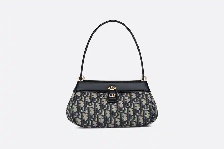 A pillar of the Spring-Summer 2023 fashion show. this season's new Dior Key bag draws inspiration from House archives to create a style with retro charm. Offered in blue Dior Oblique jacquard. it is distinguished by a CD twist clasp inspired by an exclusive lock and revealing a compartment to accommodate all the essentials. Featuring thin leather handles. the refined small bag can be worn over the shoulder or carried by hand to accompany all of this season's attire.